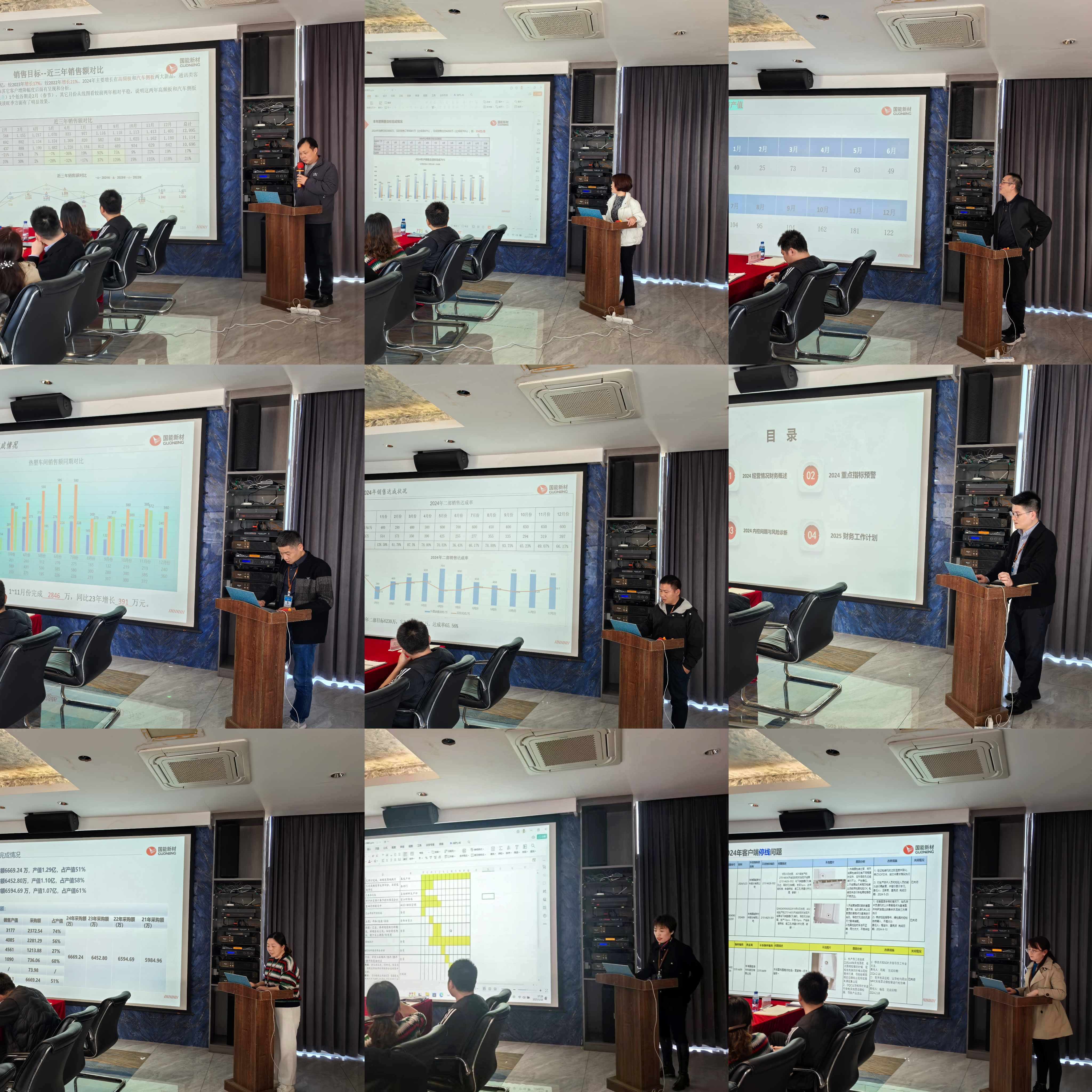 会上,各部门负责人逐一登台,围绕各自部门职责,分别从2024全年度工作成绩,剖析工作中存在的典型问题、解决方案及改进措施,2025年度重点工作计划及实施方案等方面进行汇报。随后葛总对各部门的工作汇报进行了点评和全面总结,指出了目前存在的不足,并为来年的改进工作指明方向,提出改进措施。
