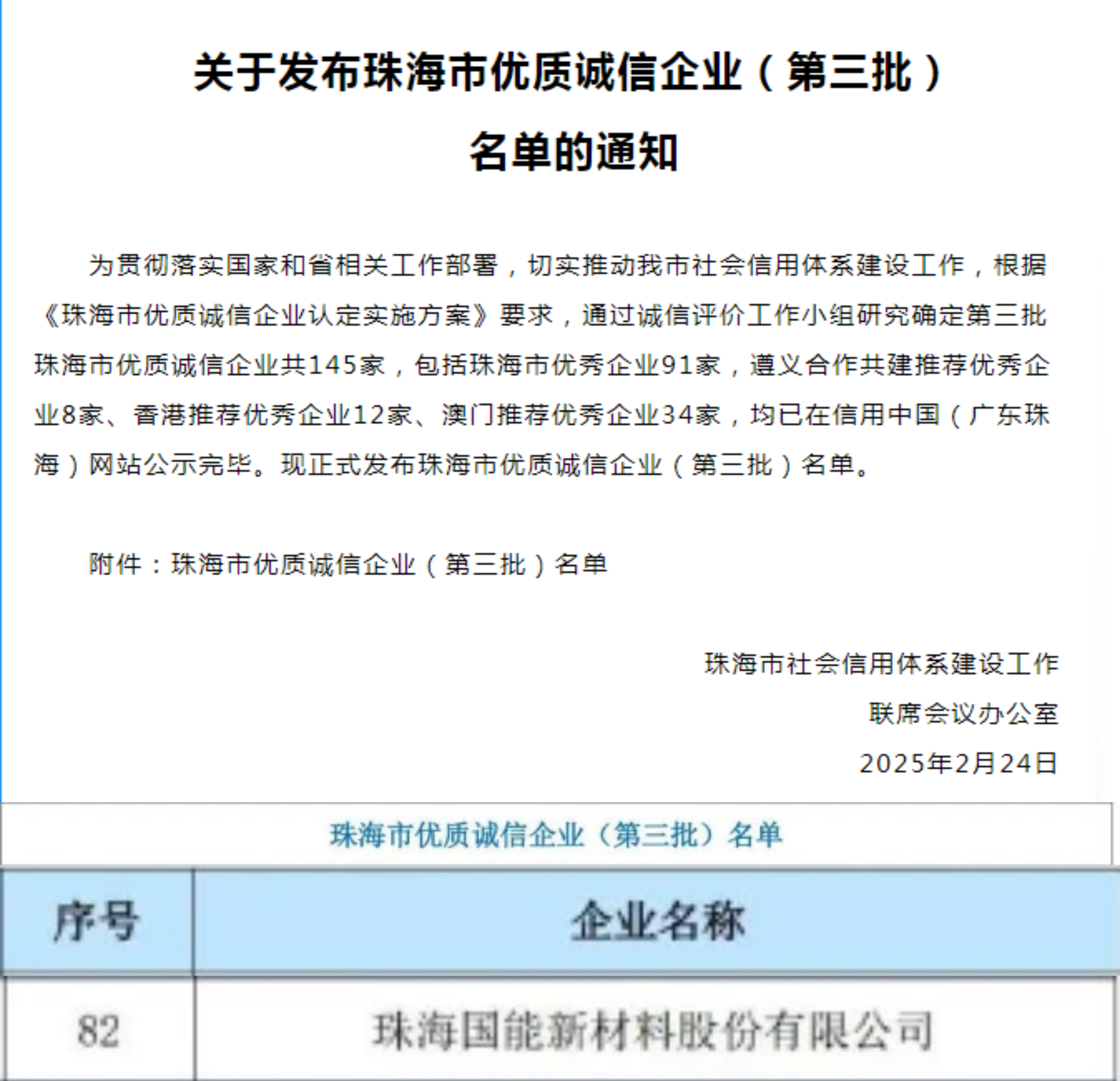 此次入选,是珠海市深入推进正面激励提升行动的重要成果,标志着国能新材在诚信经营和企业信用管理方面的卓越表现。未来将继续积极响应政府号召,不断深化与珠海市政府的合作,推动企业在高质量发展的道路上迈向新高峰。