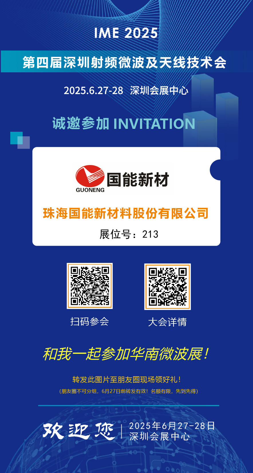 展会邀请 I 国能新材邀您6月27日-28日相聚深圳第四届IME射频微波及天线技术会